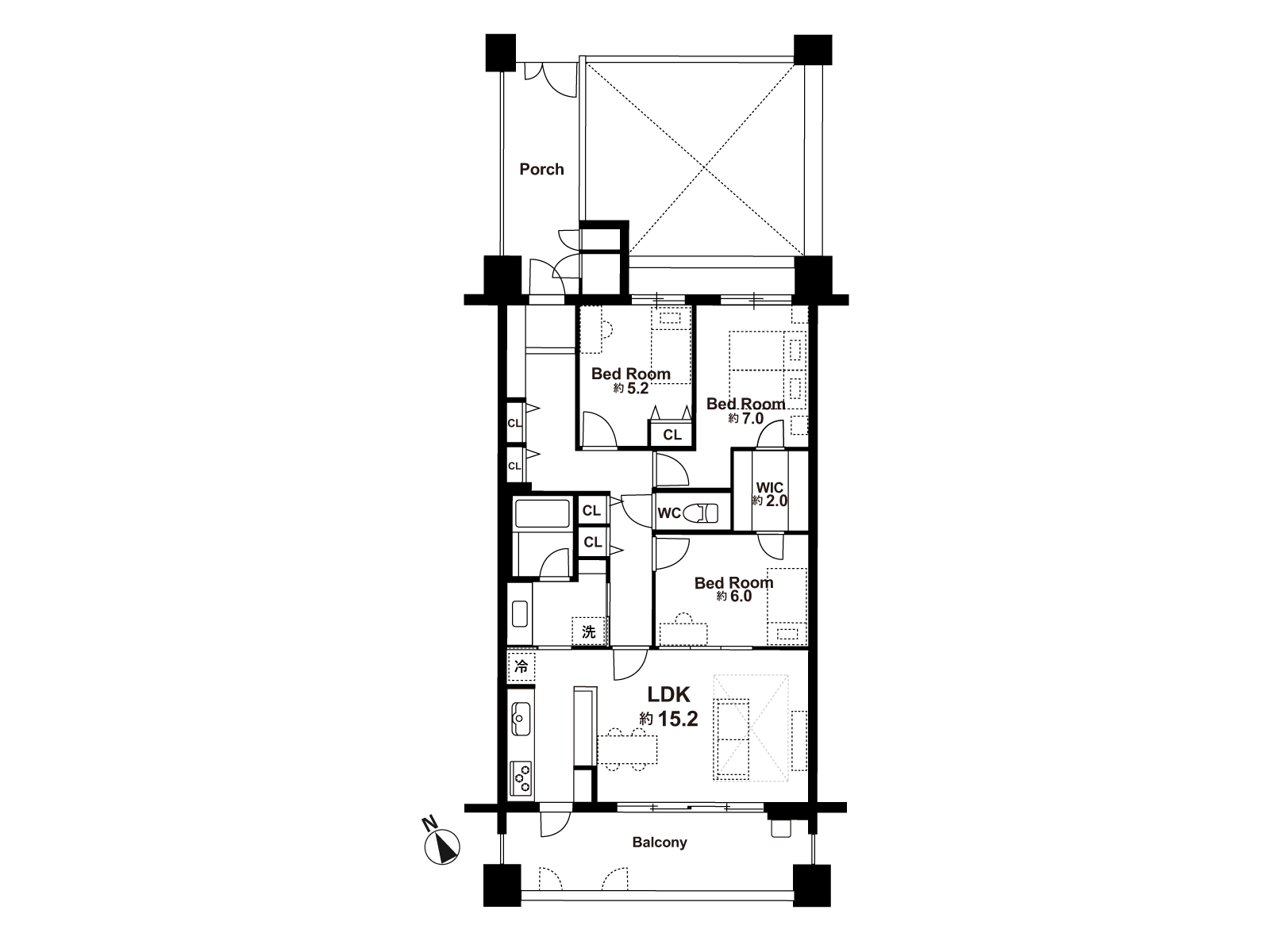 5階部分最上階、ペット可、駅徒歩7分のフルリノベーションマンション。収納力が豊富な3LDK+S(WIC)です。